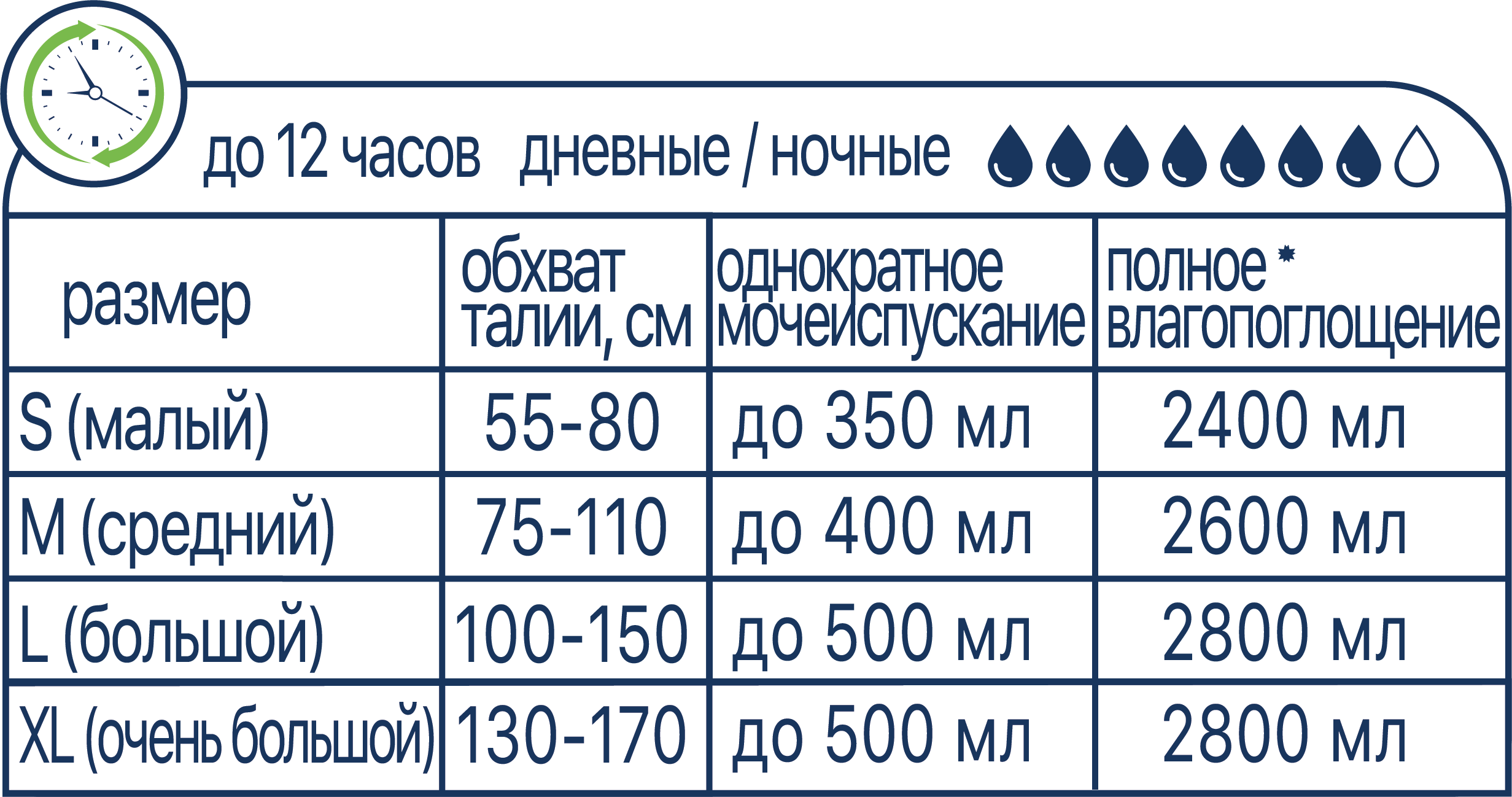Чаще всего при выборе подгузников покупатели ориентируются только на капли, нарисованные на упаковке — это неверно. Одна фирма может обозначать на упаковке 5 капель, а другая — 8 капель, при этом впитываемость подгузников будет одинаковой. Для правильного выбора необходимо ориентироваться на миллилитры.