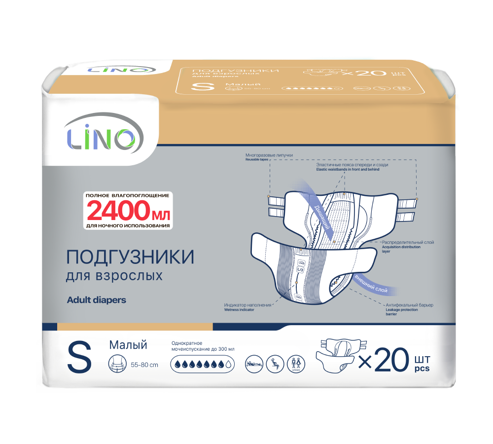 Подгузники для взрослых LINO ночные до 12 часов ношения предназначены для людей с различной степенью недержания. Прилегающий к телу слой сделан из мягкого нетканого материала, который обеспечивает бережный уход за кожей. Быстро впитывают и удерживают влагу, в течение длительного времени, поддерживая сухость, чистоту и комфорт.